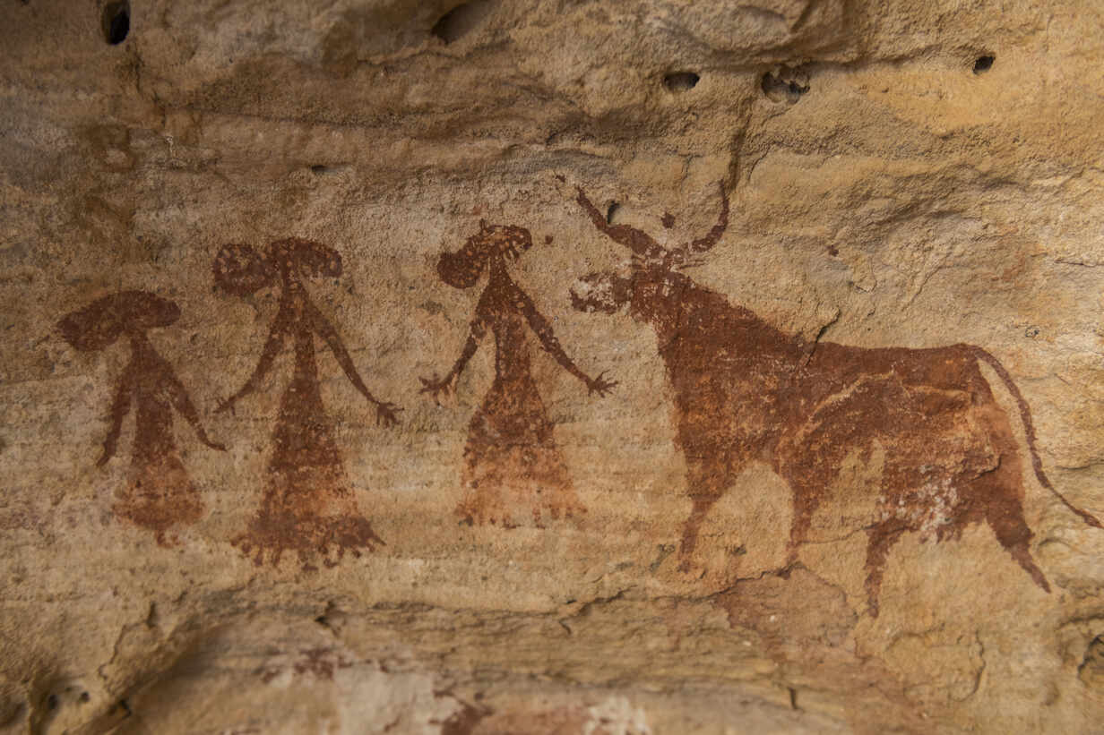 Not all rock art is prehistoric. In some regions, these artistic traditions thrived into the late nineteenth century, while in others, they are still practiced today. In South Africa’s Drakensberg Mountains, for example, numerous paintings depict encounters between the indigenous San (Bushmen) people and European colonists, who are shown on horseback and armed with rifles. Many of the Drakensberg paintings utilize subtle polychrome shading, giving their subjects a sense of three-dimensionality. Created by many artists from different cultures and eras, the flowing naturalism and dynamic movement of the finest rock art reflect the skill and vision of masterful creators.