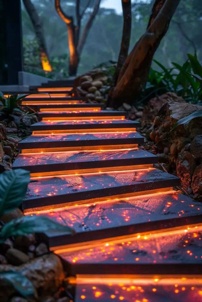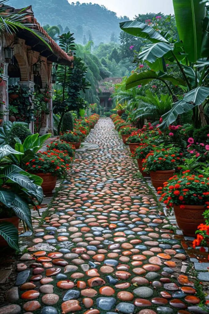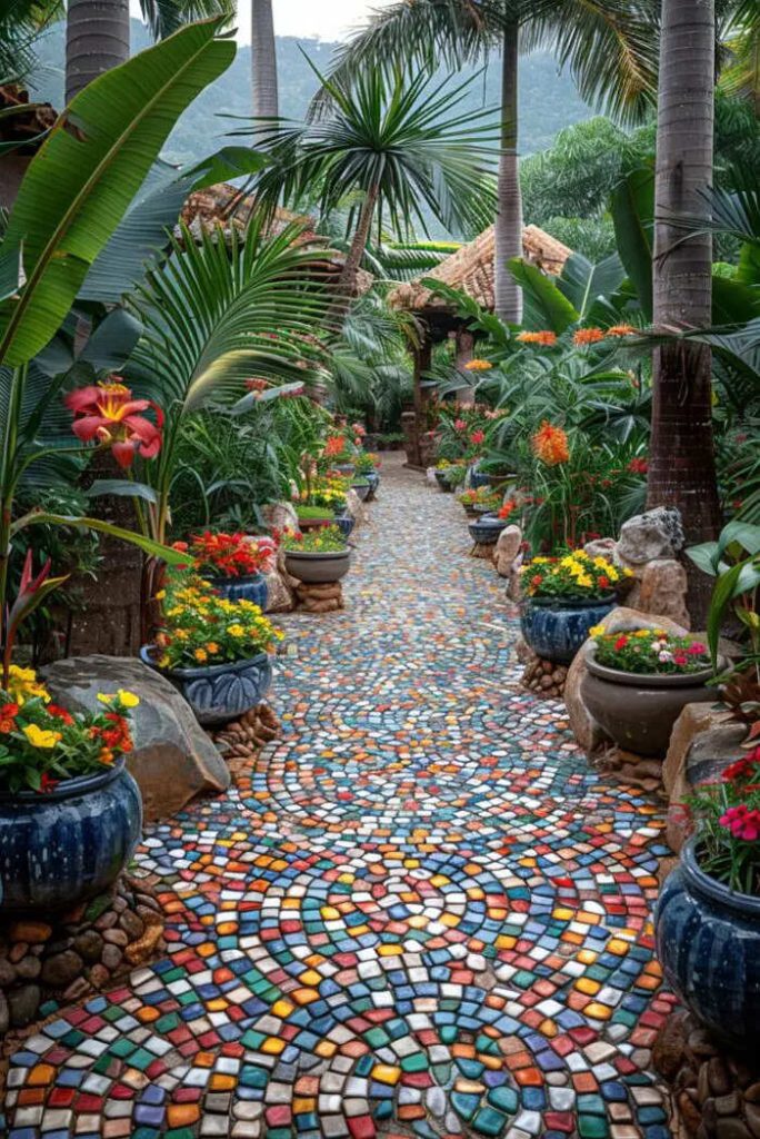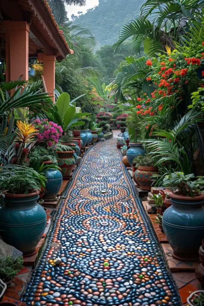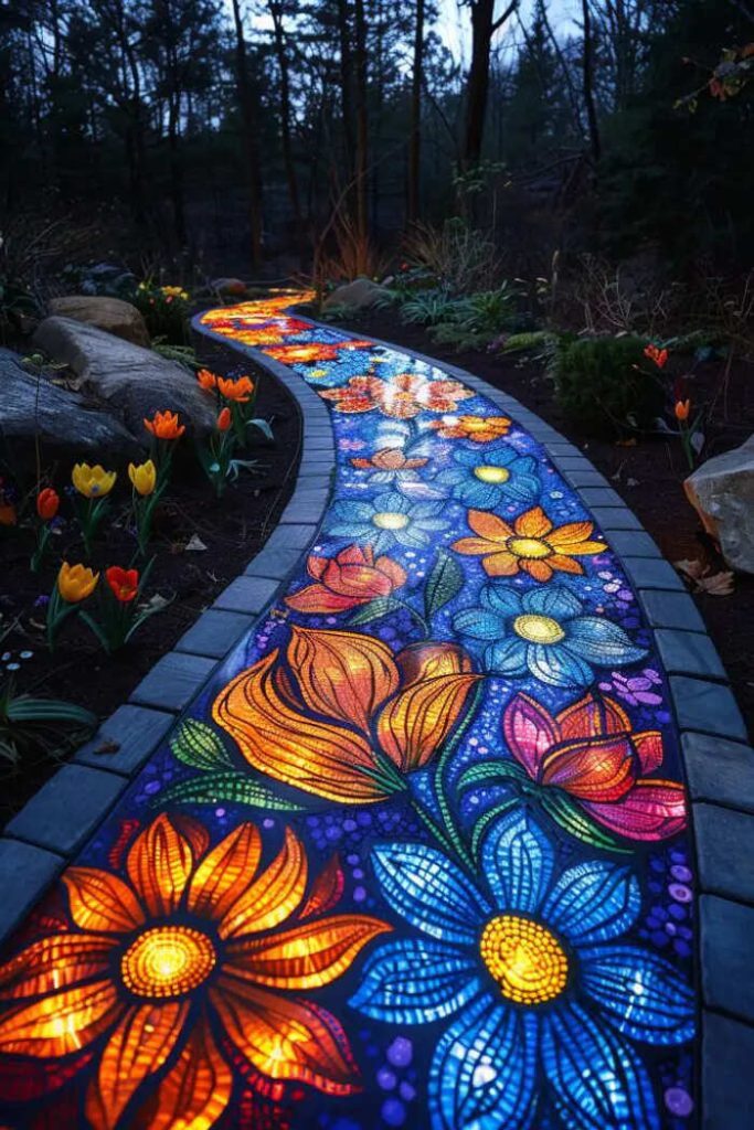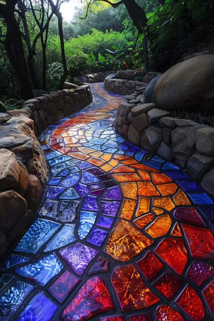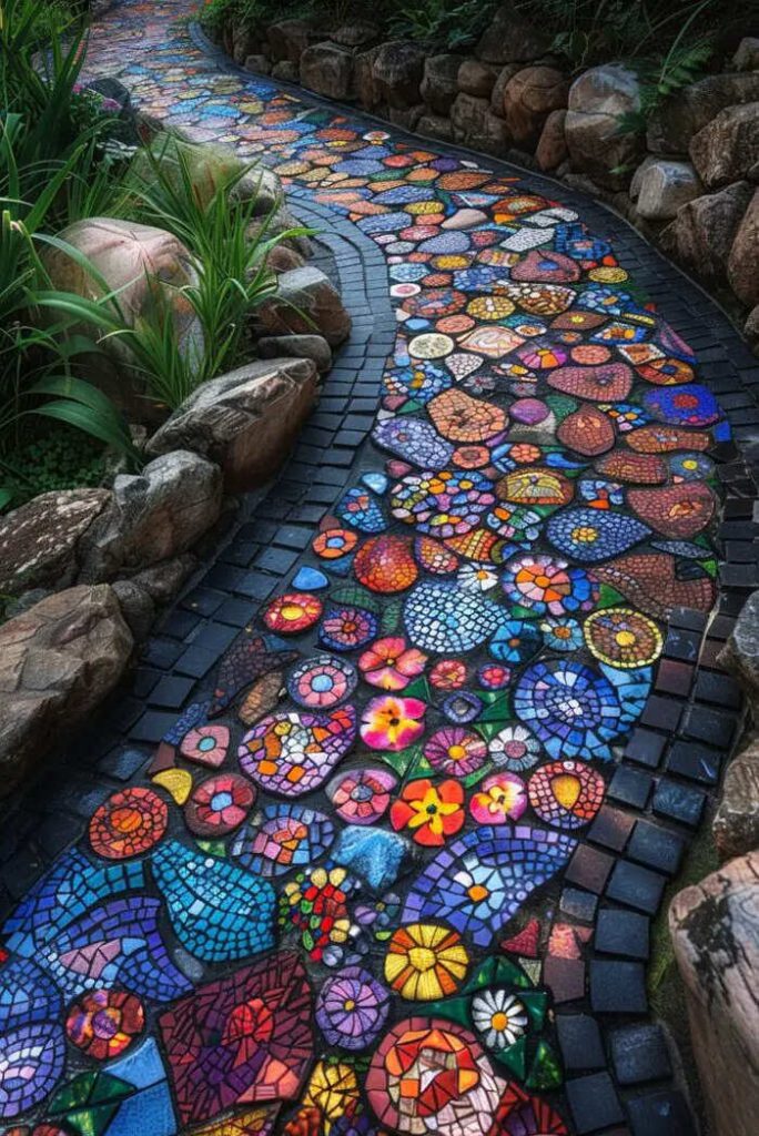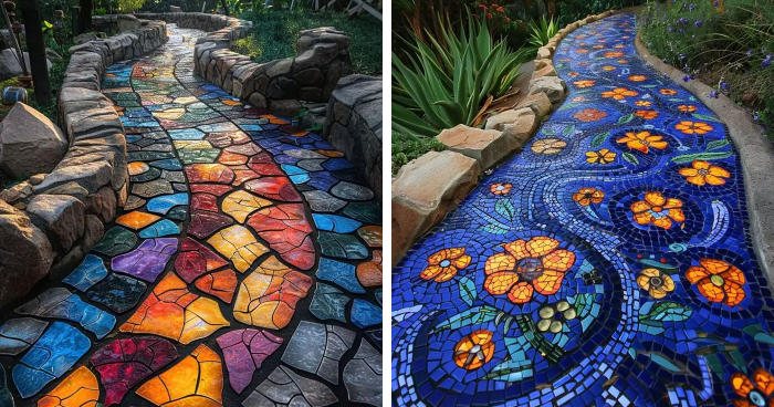 A creative and well-designed driveway in your home’s outdoor space can transform your yard into a beautiful oasis. Through the use of different materials, such as stone, wood or gravel, to give some examples, it is possible to transform a simple path between plants and shrubs into a picturesque route that invites visitors to explore and discover every artfully crafted detail . Colorful mosaics, floral motifs, curves and lights positioned to enhance the design will make your garden an enchanted place, where walking will be a real pleasure. Below you will find more ideas to draw inspiration from, or simply to admire.