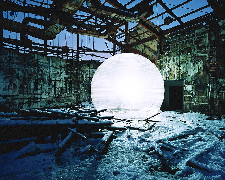 In “Shield,” Kobayashi uses a large cocoon-like ball of light placed within isolated landscapes, crafting images that evoke a sense of animism and the hidden mysteries of the Japanese psyche. On his website, Kobayashi poetically describes his method: he imagines himself inside a large-format camera, opening the shutter to enter the frame. Using a simple device, he illuminates the scene, allowing light to transform the familiar into the extraordinary. This act of stepping inside the frame to manipulate light directly onto the entire screen redefines the everyday landscape, creating spaces that feel simultaneously intimate and alien. Through “Shield,” Kobayashi invites viewers to see the world not as it is, but as it could be—transformed by light, framed by the imagination.
