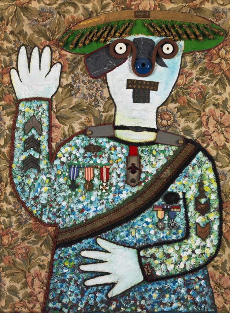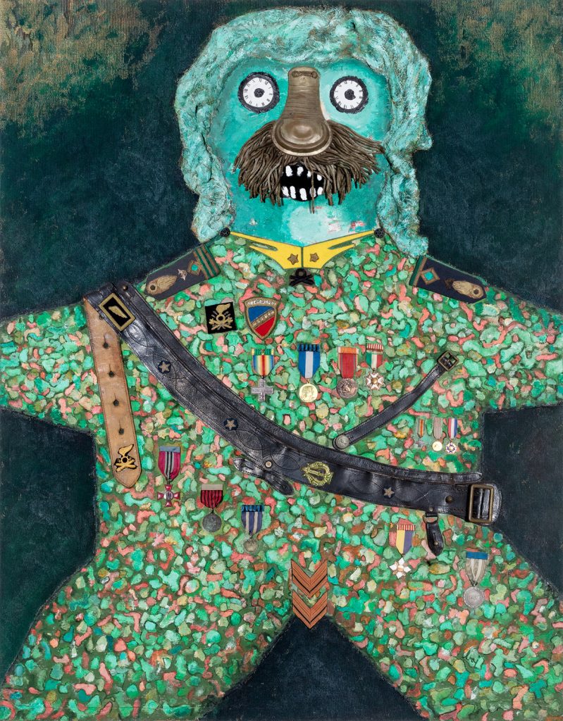 Enrico Baj, General, 1975, acrylics and collage on wood