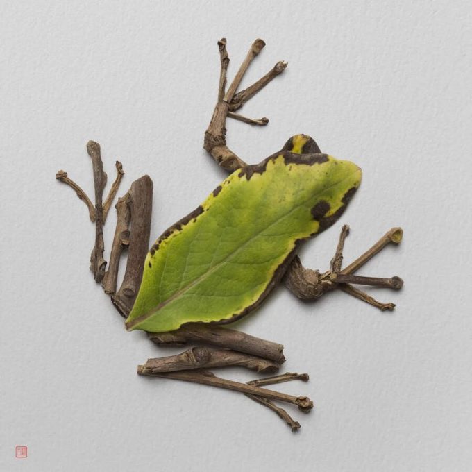 Artist transforms petals, leaves and pieces of wood into colorful animal portraits